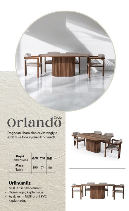“Orlando Ceviz Masa” için ilk yorumu yapan siz olun.