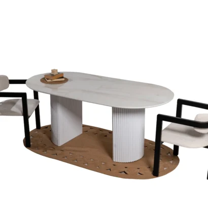 Modern çizgileriyle dikkat çeken bu masa, sağlam gövdesi ve zarif detaylarıyla evinizin en özel alanlarına şıklık kazandırır.