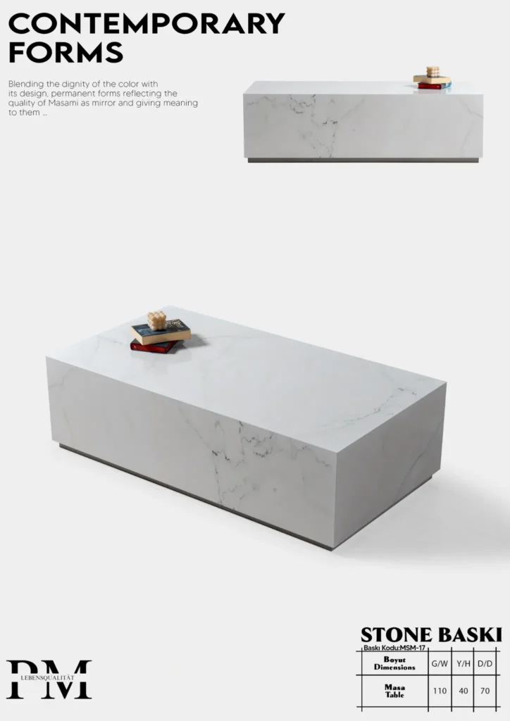 Modern çizgileriyle dikkat çeken bu masa, sağlam gövdesi ve zarif detaylarıyla evinizin en özel alanlarına şıklık kazandırır.
